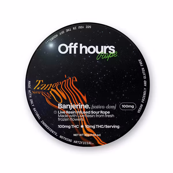 The OFFHOURS Banjerine “Tangerine Sunrise” Live Resin Rope delivers a vibrant, sativa-dominant experience wrapped in bold citrus flavor. Infused with premium Banjerine live resin, this fast-acting edible is crafted for uplifting, social, and energizing vibes—perfect for daytime enjoyment or creative moments.